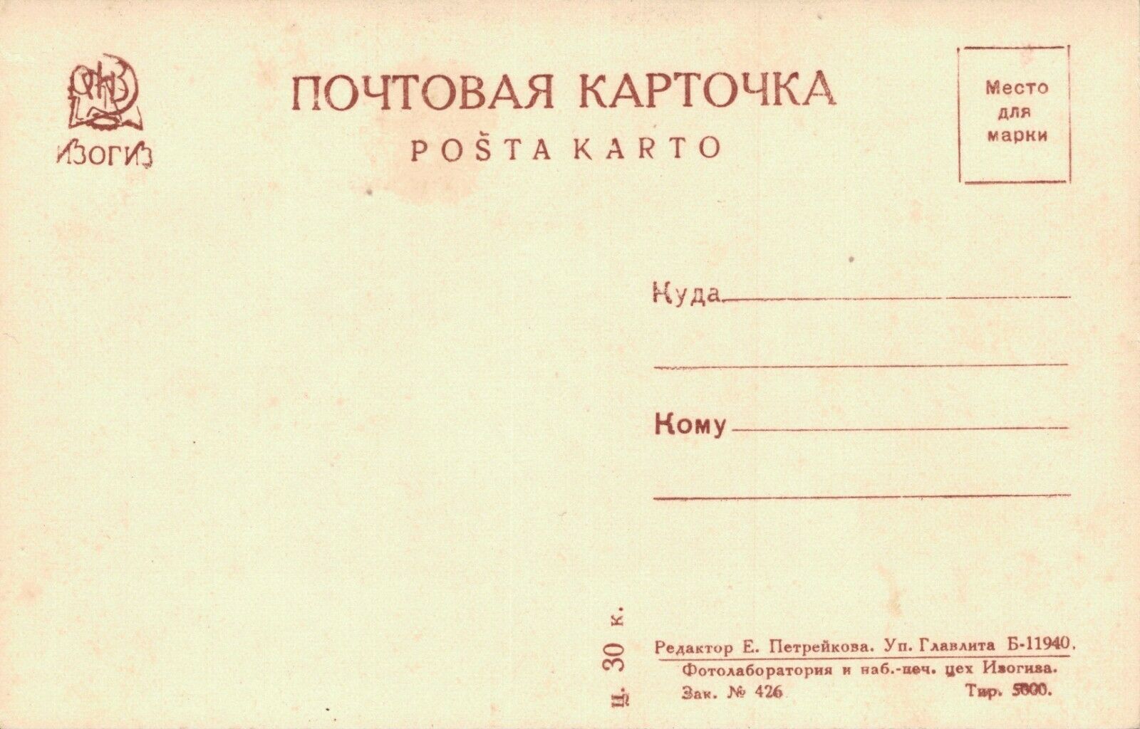 Postcard Size: STANDARD 3 1/2 BY 5 1/2 (9X14CM) (UNLESS OTHERWISE NOTED ABOVE)