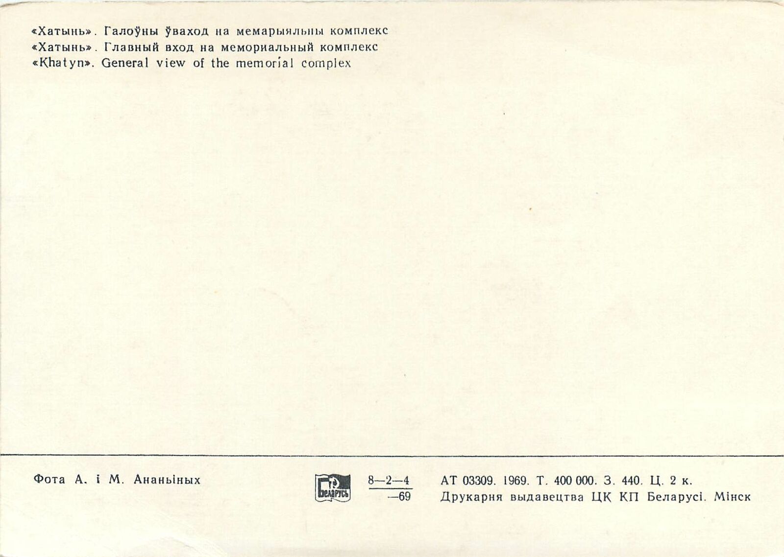 Russia Postcard Khatyn general view of memorial complex