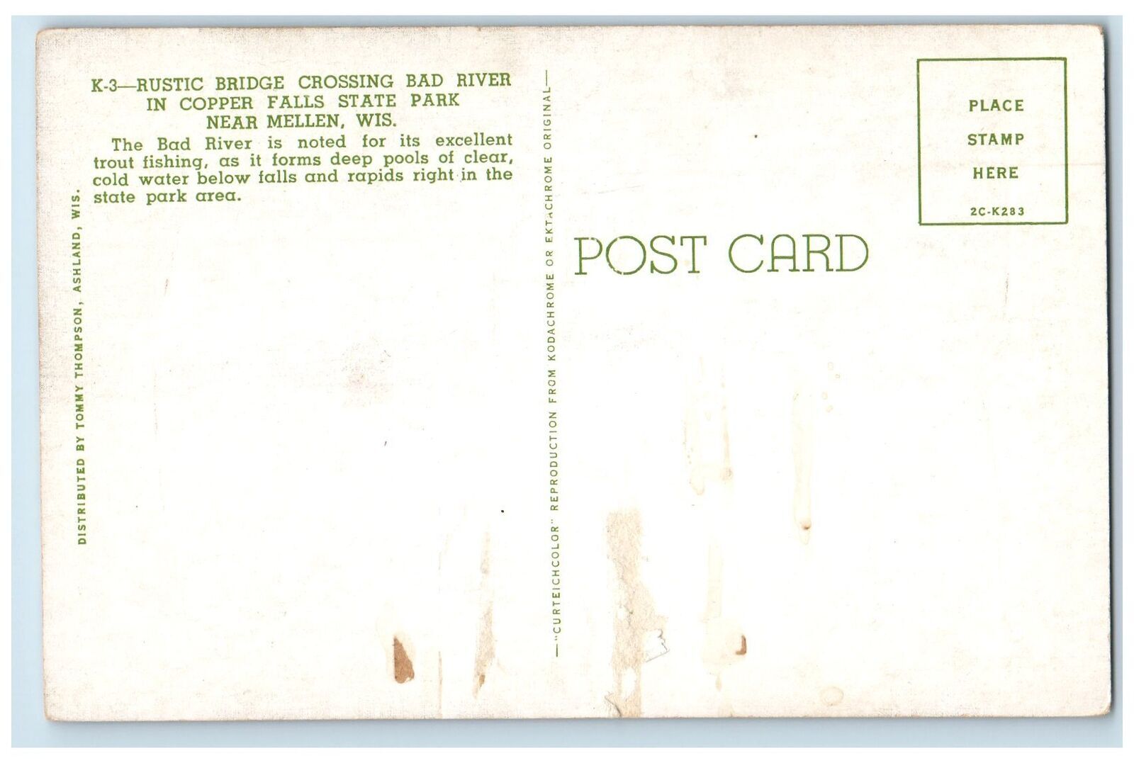 Rustic Bridge Crossing Bad River Copper Falls State Park Near Mellen WI Postcard