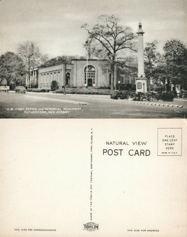 RUTHERFORD N.J. US POST OFFICE & MEMORIAL MONUMENT VINTAGE POSTCARD