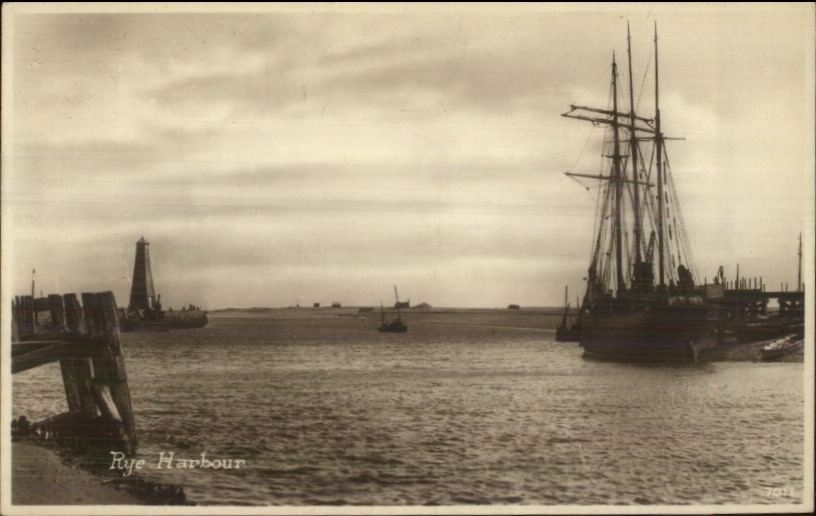 Rye Harbor UK Lighthouse c1910 Real Photo Postcard