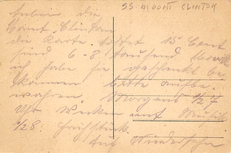 S S Mount Clinton Freighter Ship Postcard , Grade: 1 Size: Regular Size Postcard - approximately 3 1/2 inch x 5 1/2 inch (9 CM x 14 CM) Grading Scale: Grade 1 = Perfect corners Grade 2 = Very Minimal corner wea ... Read More