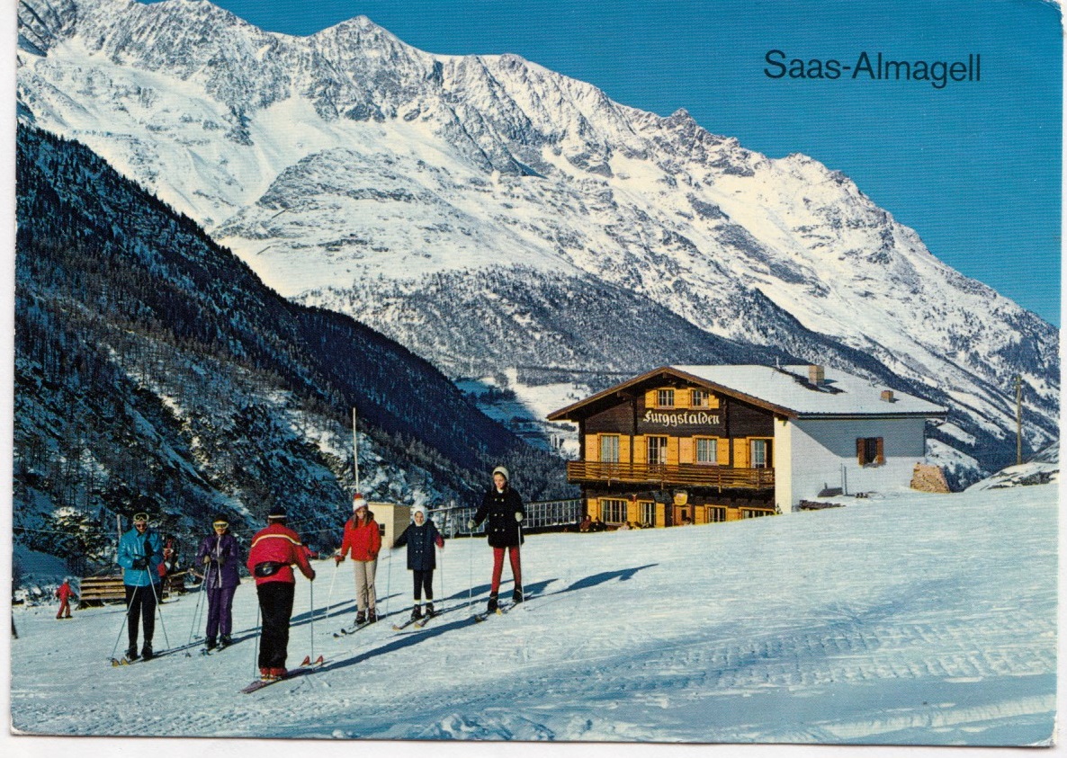 23464 Saas-Almagell, Switzerland, 1973 used Postcard Condition: good to very good, corners and edges slightly worn & creased.