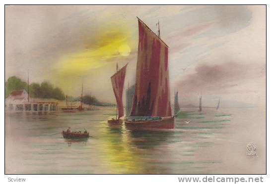Sail Boats, row boat, PU-1921 :: Postcard, 3.5" by 5.5", Litho, WOB, CW, EW