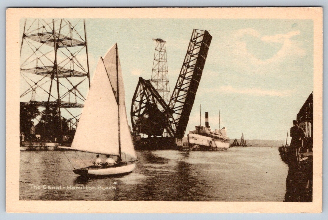 Sailboat, The Canal, Hamilton Beach Ontario Canada, Vintage PECO Postcard