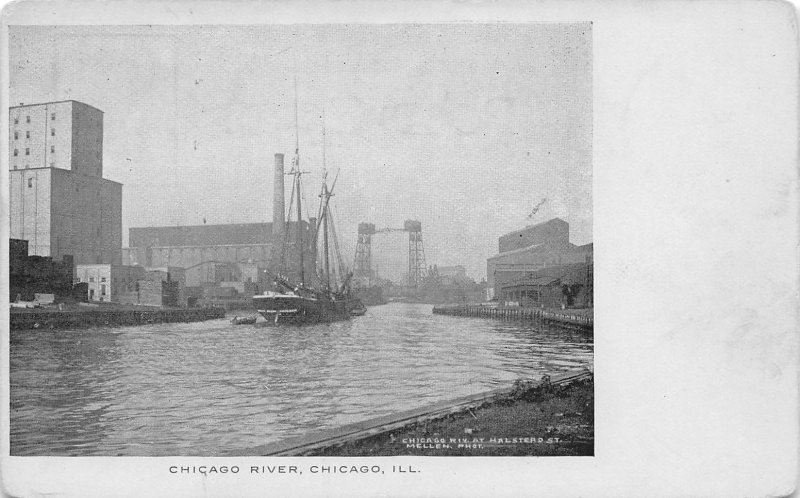 Sailing Ship Chicago River Chicago Illinois 1907c postcard