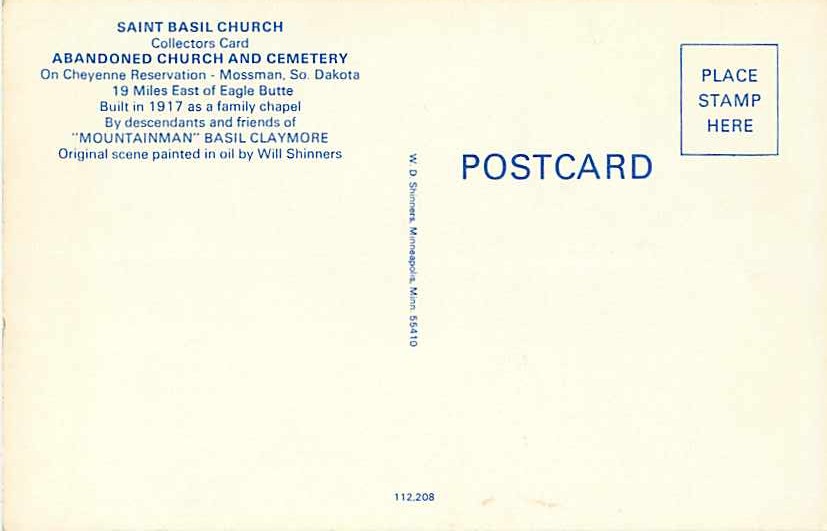 Saint Basil Church Abandoned Mossman South Dakota SD Chrome PC Painted byWill ShinnersType of Postcard: STANDARD SIZE Chrome
