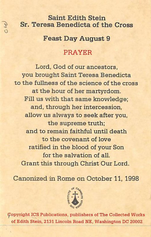 Saint Edith Stein holding her cousins son. Turtle Mailman, non postcard backi...