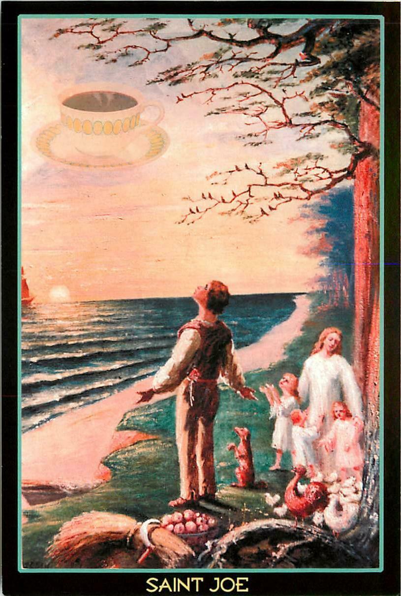 Saint Joe Cup of Coffee in the Sky by Ken Brown Collage Art Postcard