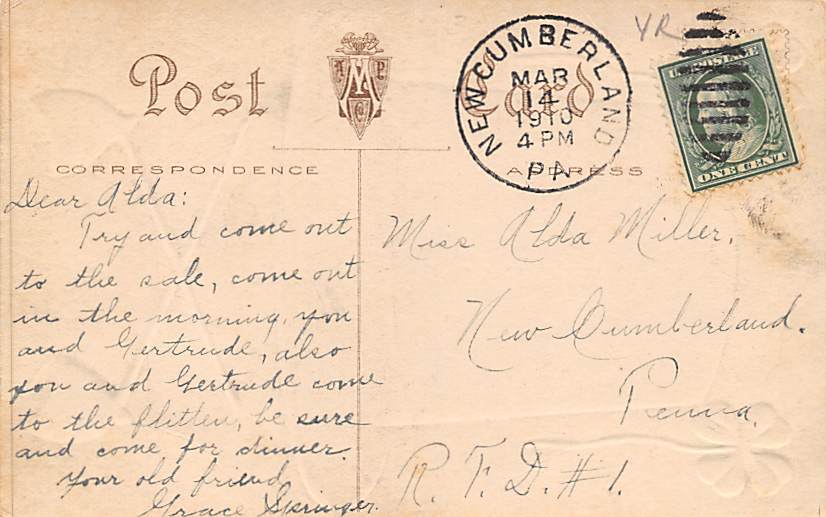 R = Regular Size Postcard - approximately 3 1/2 inch x 5 1/2 inch (9 CM x 14 CM)