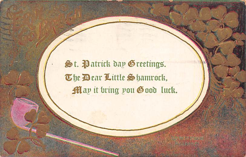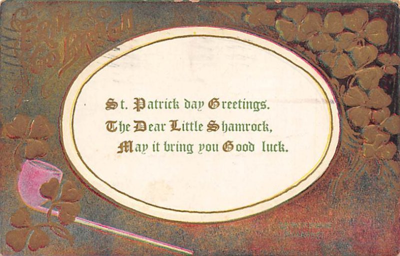 Saint Patricks Day Postcard Saint Patricks Day, Grade: 3 - light corner wear postal marking left edge Size: Regular Size Postcard - approximately 3 1/2 inch x 5 1/2 inch (9 CM x 14 CM) Grading Scale: Grade 1 = ... Read More
