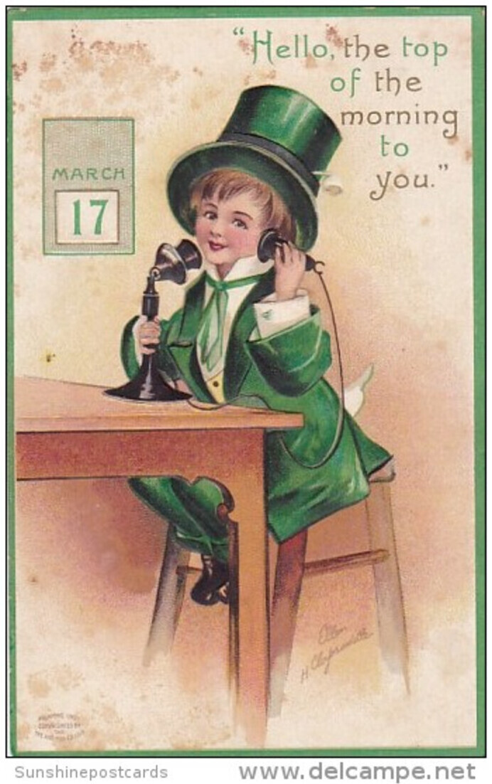 Saint Patrick's Day Young Boy On Telephone Clapsaddle