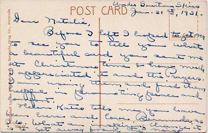 Saint Peters Church. St. Georges, Bermuda. In style of Divided Back era. Not mailed, but message dated June 21, 1931. Good condition - some edge wear - small crease in stamp box area.