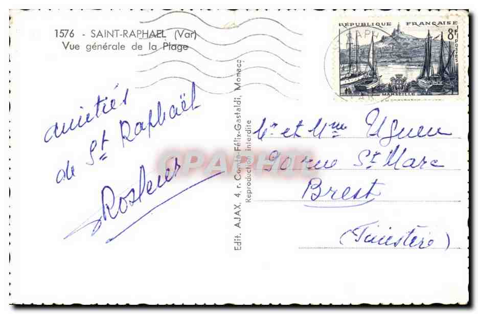 Saint Raphael Old Postcard General View of the beach