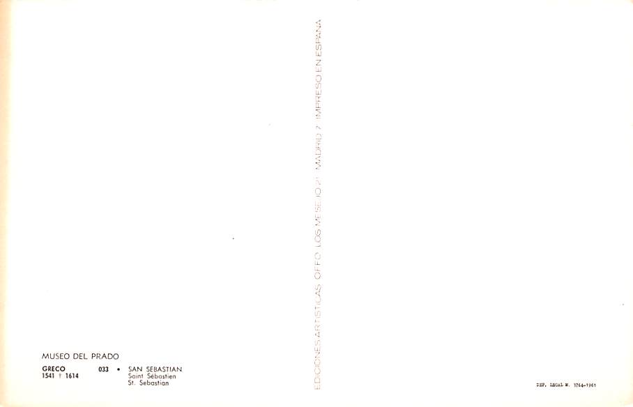 Saint Sebastien - Greco Grade: 1 Category: Continental Size Postcard, Approx 4 in x 6 in (10 cm x 15.25 cm) Product Size: Continental size: 4X6 inches (10.5 cm x 15 cm) Grading Scale: Grade 1 = Perfect corners ... Read More