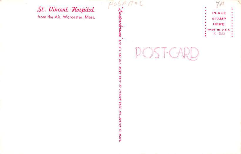 Saint Vincent Hospital Worcester, Massachusetts MA Postcard - View Images