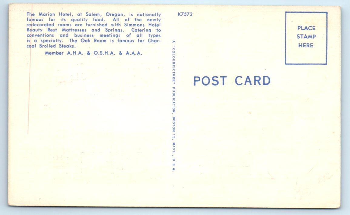 SALEM, Oregon OR ~ Roadside MARION HOTEL c1940s Linen Postcard
