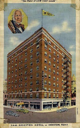 Sam Houston Hotel - Texas TX Postcard Postal Date: Unused Grade: 4 - paper glued on back side tape on edges Size: Regular Size Postcard - approximately 3 1/2 inch x 5 1/2 inch (9 CM x 14 CM) Grading Scale: Gr ... Read More