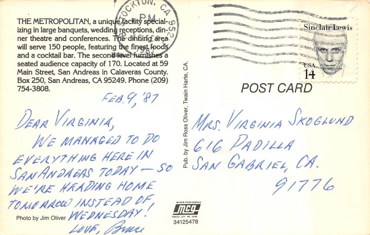 SAN ANDREAS, CA California THE METROPOLITAN~Banquet Facility CALAVERAS COUNTY