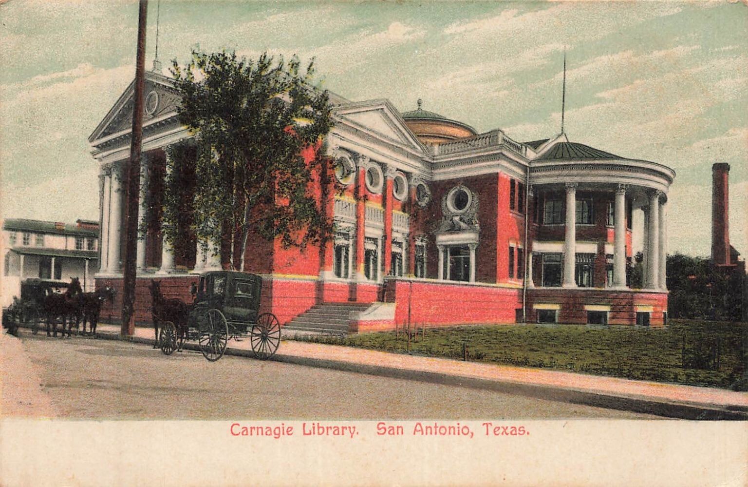 San Antonio Texas TX~Carnegie Library-Horse Carriage~1908 Postcard