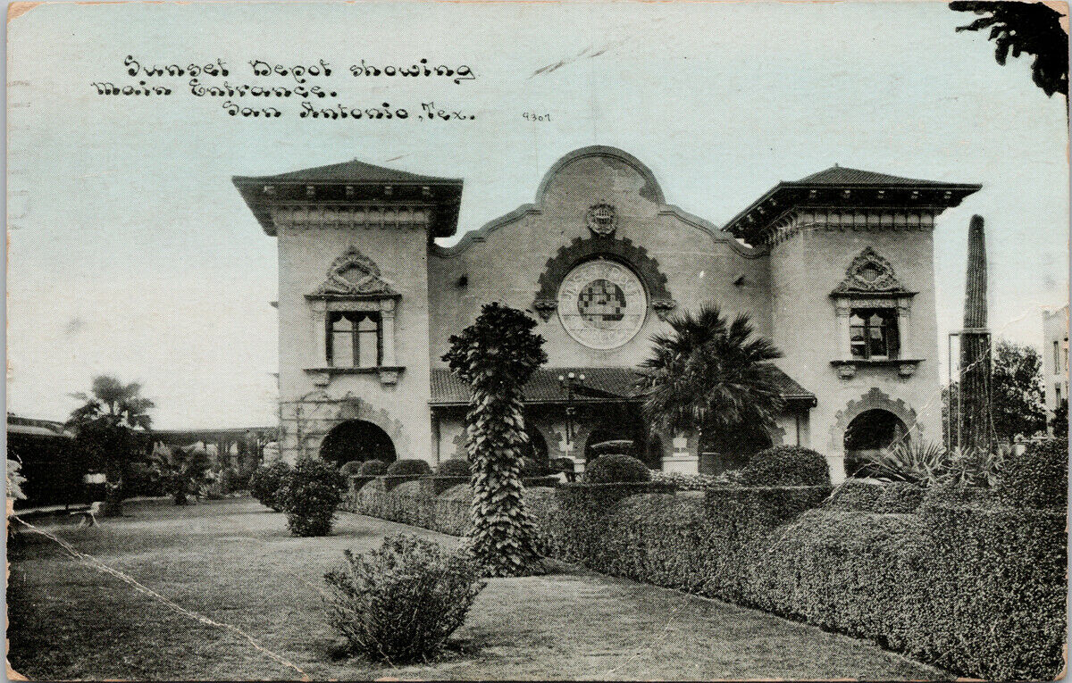 San Antonio TX Sunset Depot Texas c1911 Postcard G21