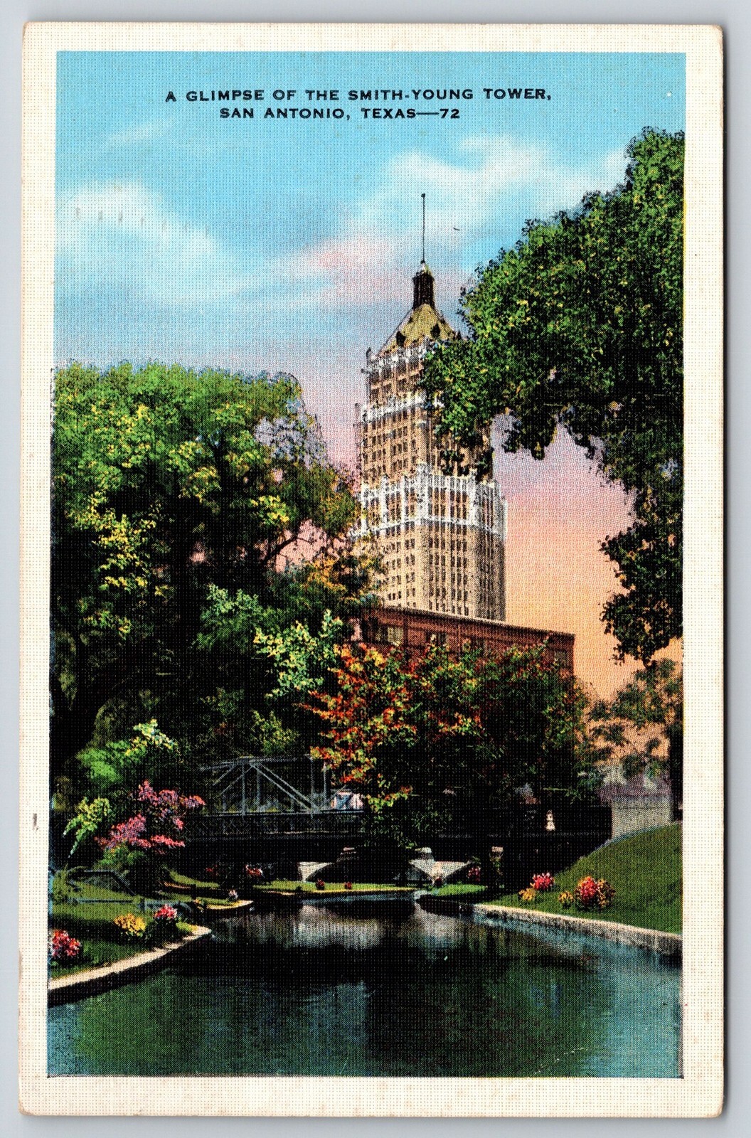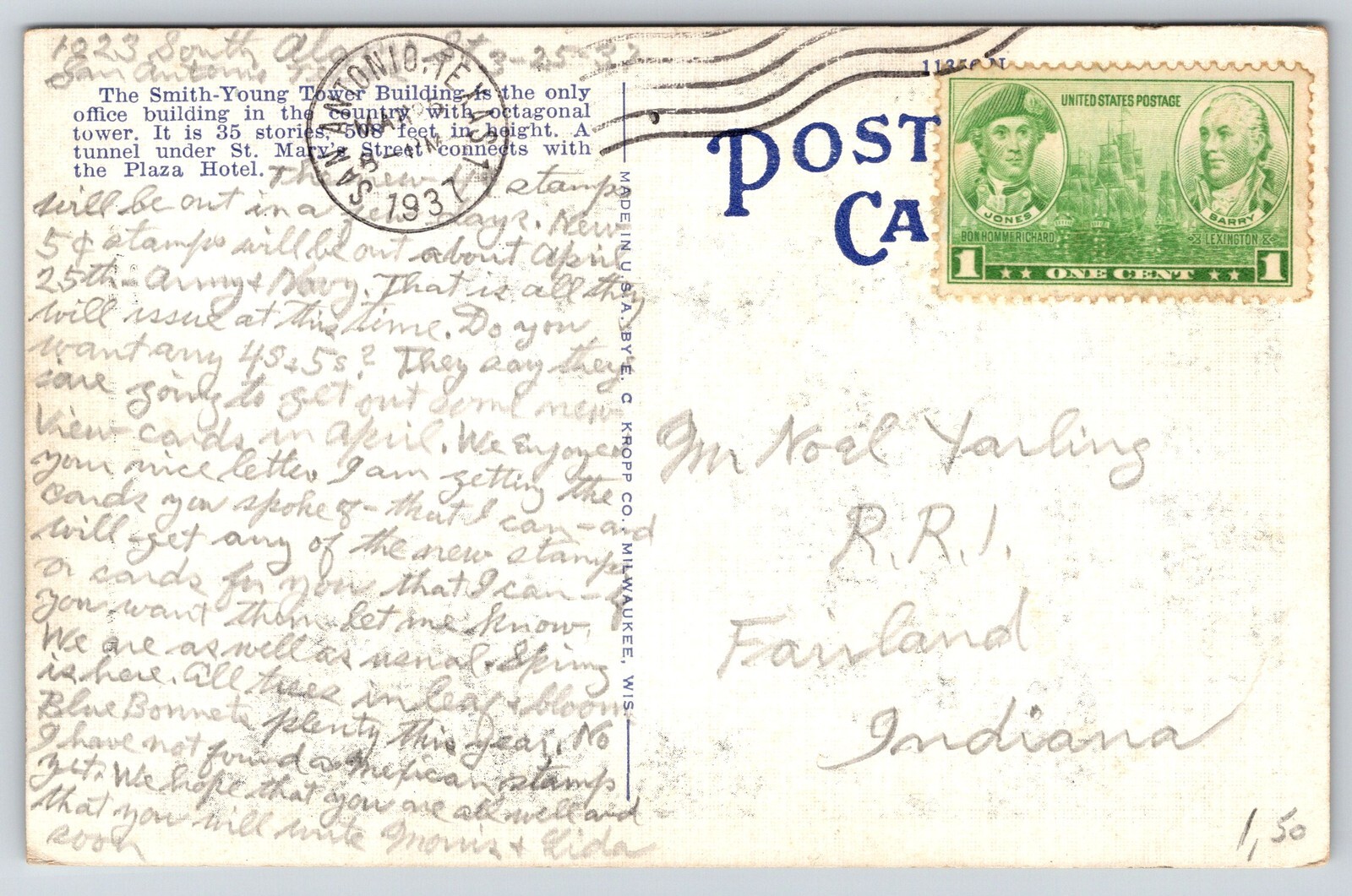 San Antonio TX~Smith-Young Tower~River~Bridge~Gothic Revival~Linen 1937 Postcard