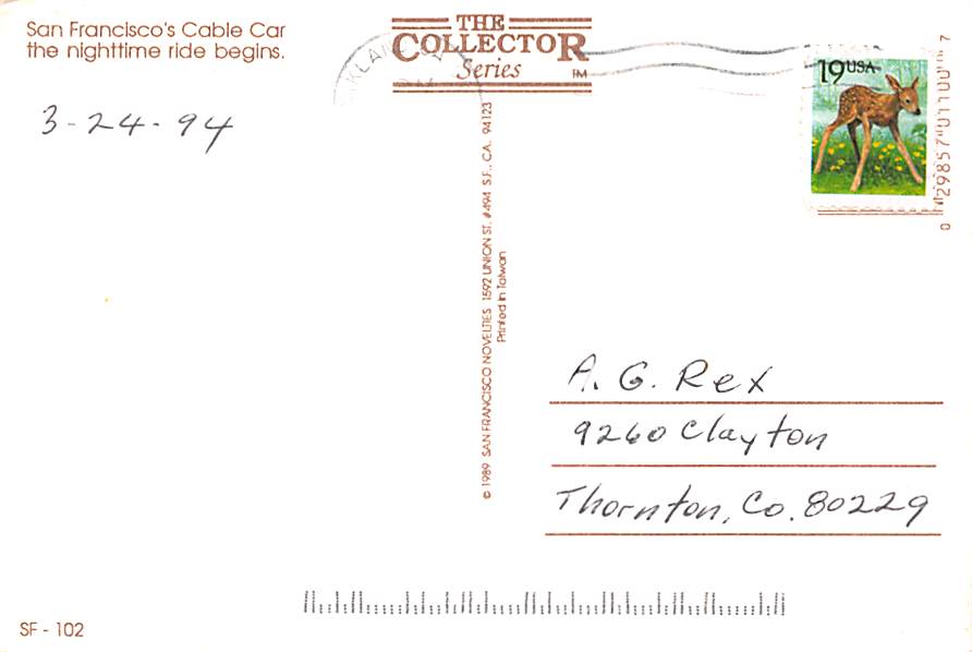 San Francisco - Grade: 1 Category: Continental Size Postcard, Approx 4 in x 6 in (10 cm x 15.25 cm) Product Size: Continental size: 4X6 inches (10.5 cm x 15 cm) Grading Scale: Grade 1 = Perfect corners Grade 2 ... Read More