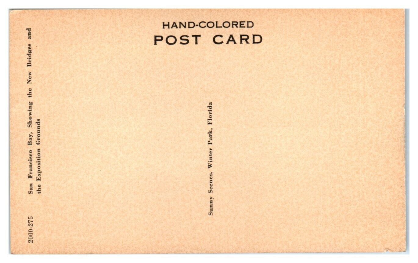 I have for sale one San Francisco Bay, CA GGIE World Fair Grounds Hand-Colored Postcard *5D.