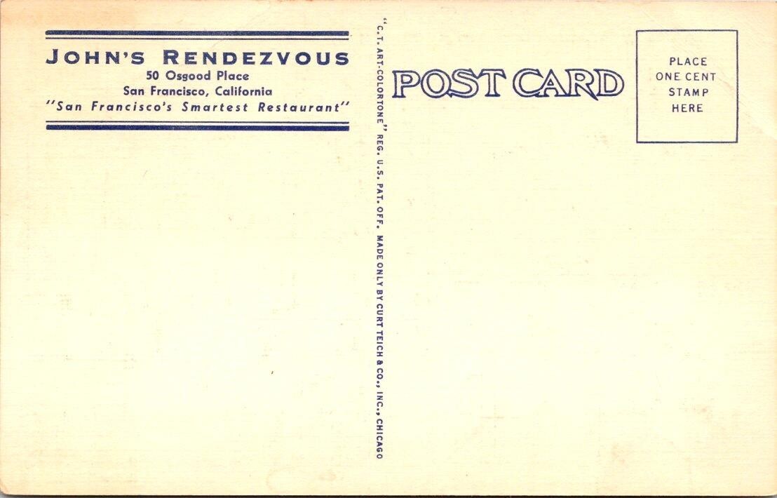 San Francisco, CA California JOHN'S RENDEZVOUS RESTAURANT ca1940's Postcard