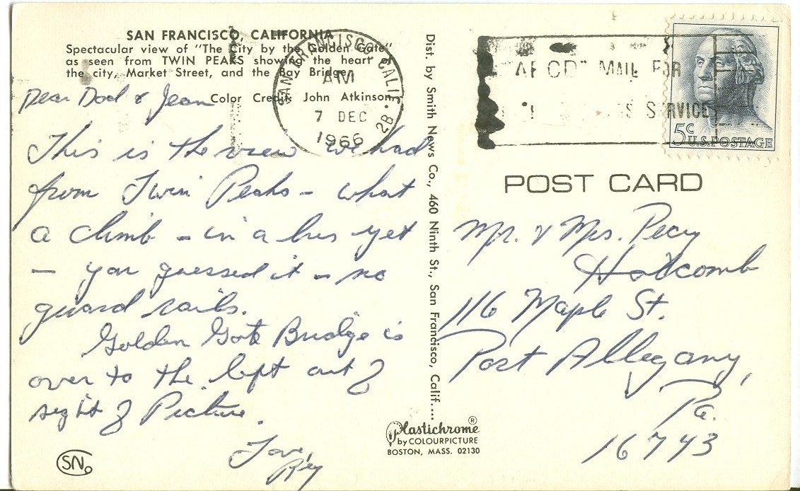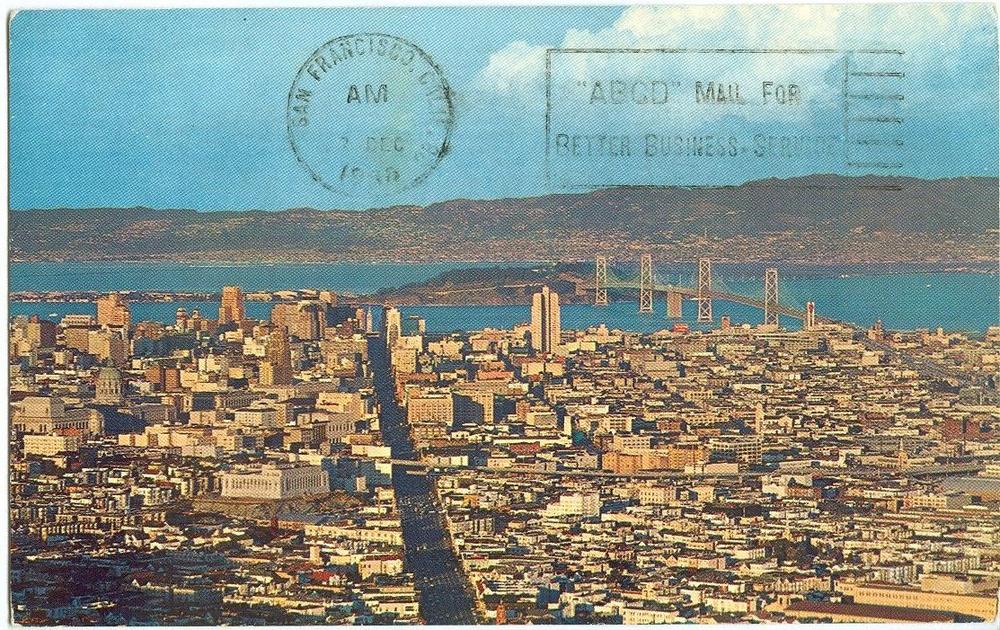 P8336 USA, San Francisco, California, Panoramic view, 1966 used Postcard 5.5x3.5 Condition: very good, corners slightly worn.