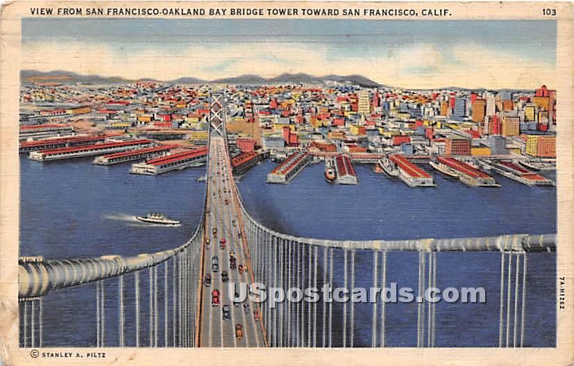 San Francisco Oakland Bay Bridge , CA Postcard - 1937