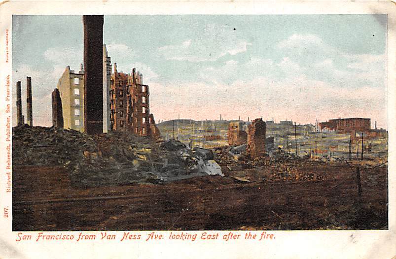 San Francisco Van Ness Ave.after fire San Francisco CA Postcard - Unused Grade: 3 Size: R - Regular size: Approx 3 1/2 X 5 1/2 inch (9 cm X 14 cm) Grading Scale: Grade 1 = Perfect corners Grade 2 = Very Minima ... Read More