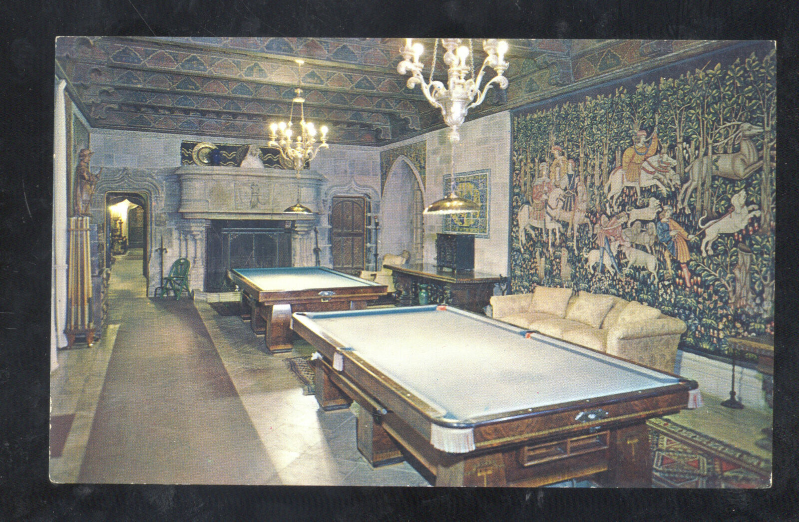 SAN SIMEON CALIFORNIA HEARST POOL HALL INTERIOR BILLIARDS TABLE POSTCARD