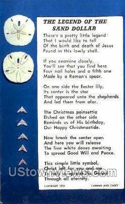 Sand Dollar - Florida Coast , Florida FL Postcard - Unused Grade: 1 Size: R - Regular size: Approx 3 1/2 X 5 1/2 inch (9 cm X 14 cm) Grading Scale: Grade 1 = Perfect corners Grade 2 = Very Minimal corner wear, ... Read More