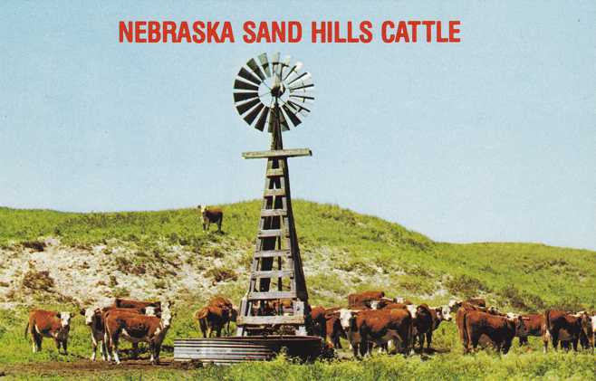 Sand Hills Cattle and Windmill - Nebraska.Standard sized chrome card.