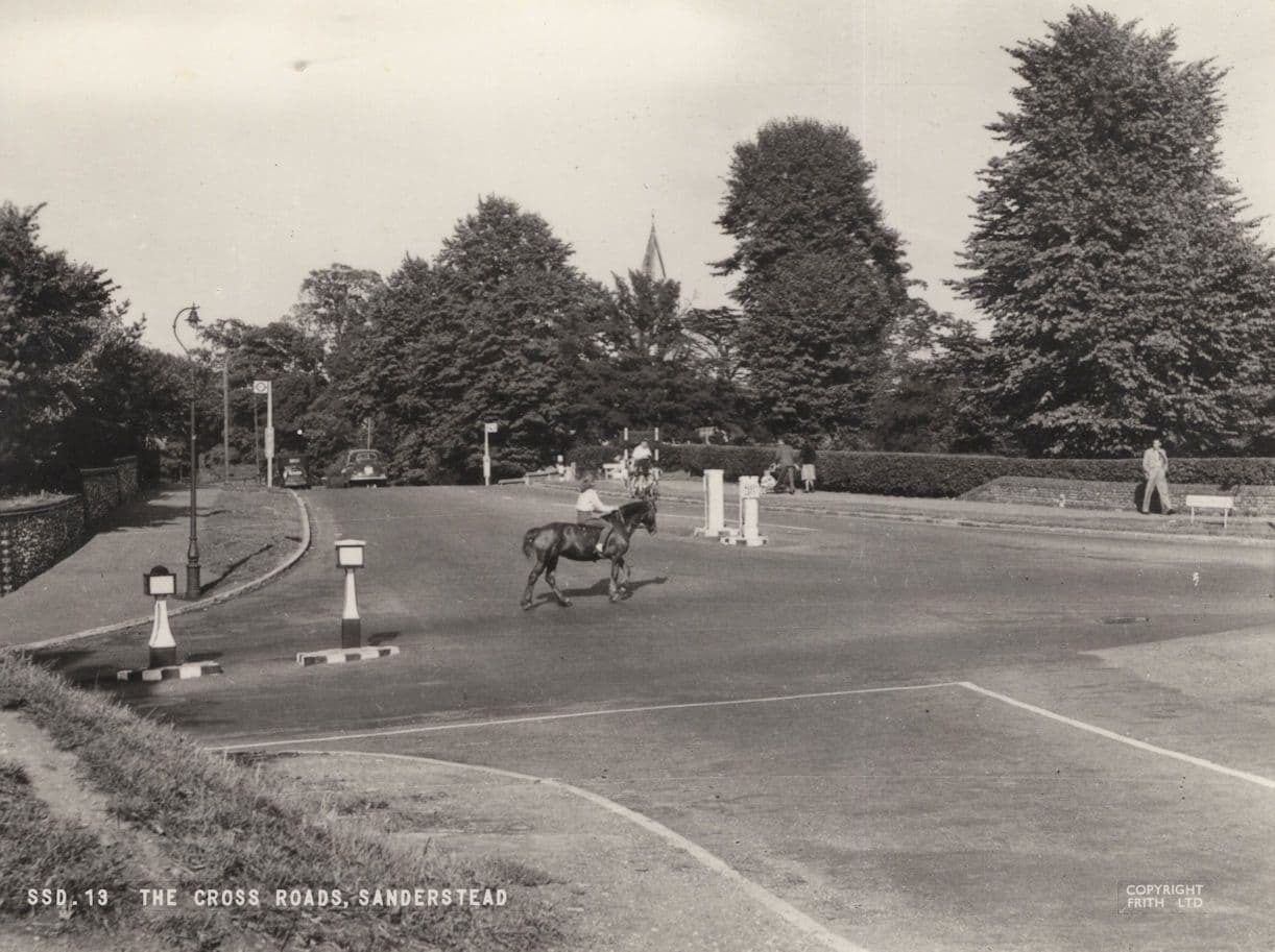 Sanderstead Crossroads Surrey Horse Crossing Road RPC Postcard