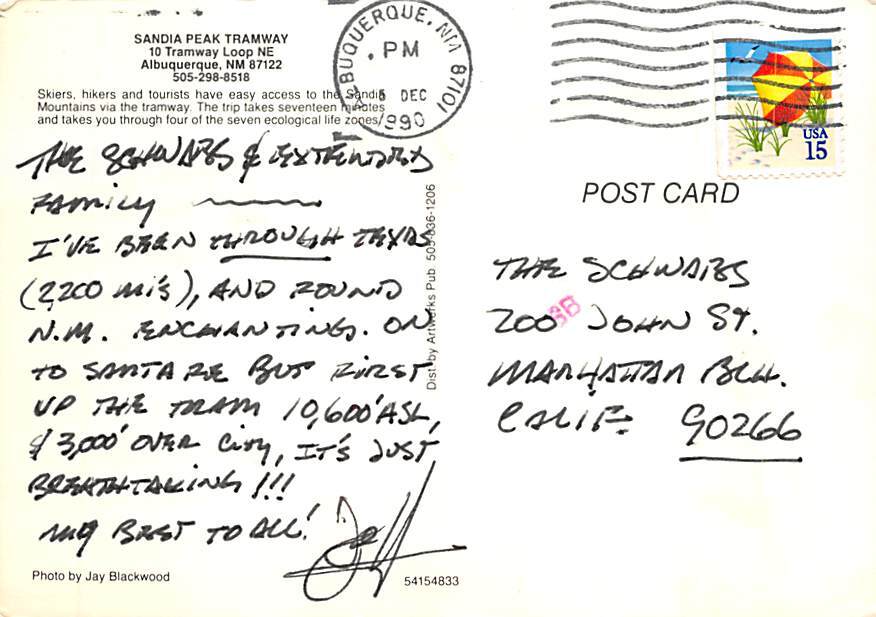 Sandia Peak Tramway Albuquerque, New Mexico NM Postcard - 1990