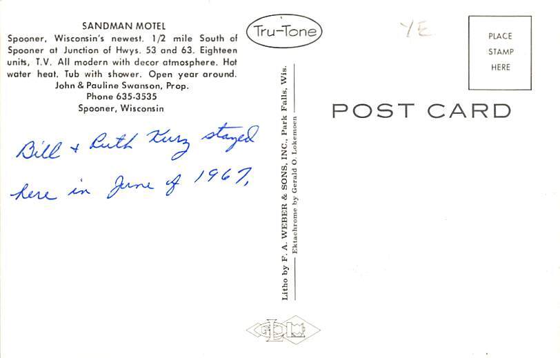 Sandman Motel Postal Date: View Images Grade: 1 Size: Regular Size Postcard - approximately 3 1/2 inch x 5 1/2 inch (9 CM x 14 CM) Grading Scale: Grade 1 = Perfect corners Grade 2 = Very Minimal corner wear, n ... Read More
