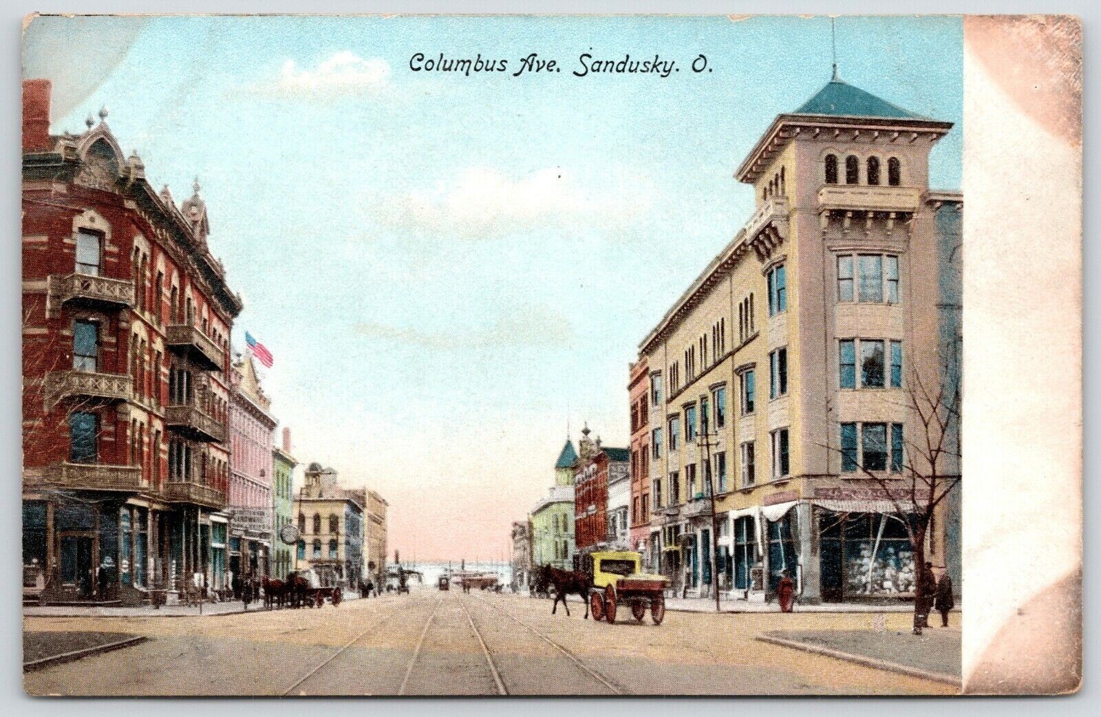 Sandusky Ohio~Columbus Avenue to Waterfront~Hardware~Street Clock~Wagon~c1905