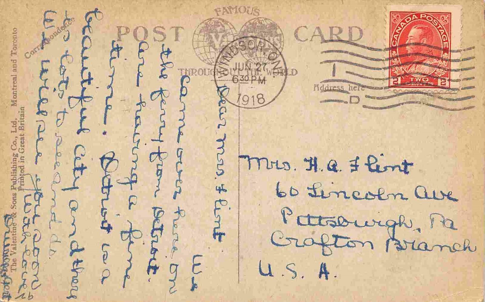 Sandwich Street Walkerville Ontario Canada 1918 postcard