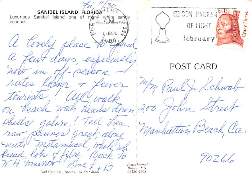 Sanibel Island - Florida Grade: 2 - marking on card Category: Continental Size Postcard, Approx 4 in x 6 in (10 cm x 15.25 cm) Product Size: Continental size: 4X6 inches (10.5 cm x 15 cm) Grading Scale: Grade ... Read More