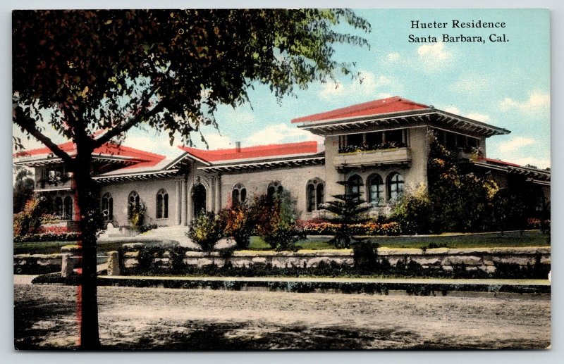 Santa Barbara California~Hueter Mansion~Gorgeous Landscaping~c1910 Postcard