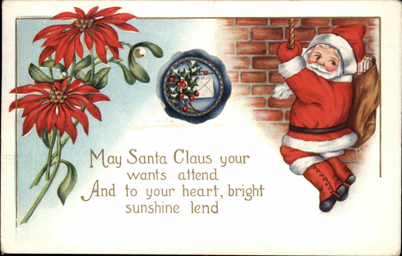 SANTA CLAUS and Poinsettias c1910 Postcard