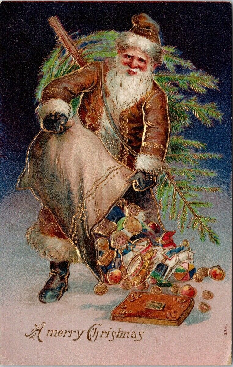 Santa Claus Brown Jacket Presents Gifts Tree Embossed Postcard E77Let me know if you have any questions and thanks for viewing. Dee