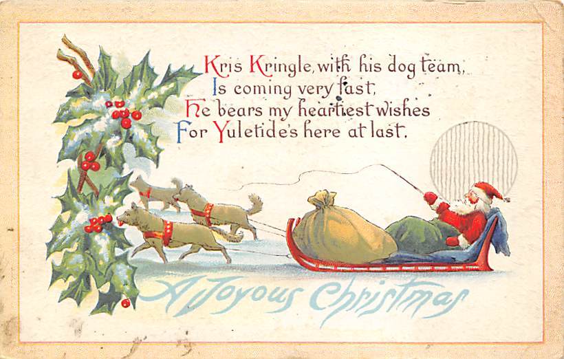 Santa Claus Postcard Postcard, Grade: 3 - stains on card Size: Regular Size Postcard - approximately 3 1/2 inch x 5 1/2 inch (9 CM x 14 CM) Grading Scale: Grade 1 = Perfect corners Grade 2 = Very Minimal corner ... Read More