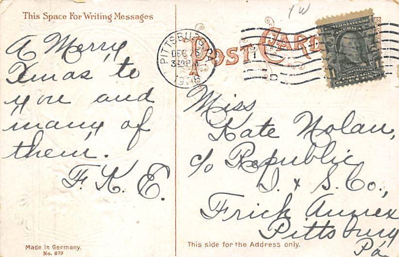 Santa Claus Postcard View Images, Grade: 3 - edge wear, light postal marking on front Size: Regular Size Postcard - approximately 3 1/2 inch x 5 1/2 inch (9 CM x 14 CM) Grading Scale: Grade 1 = Perfect corners ... Read More