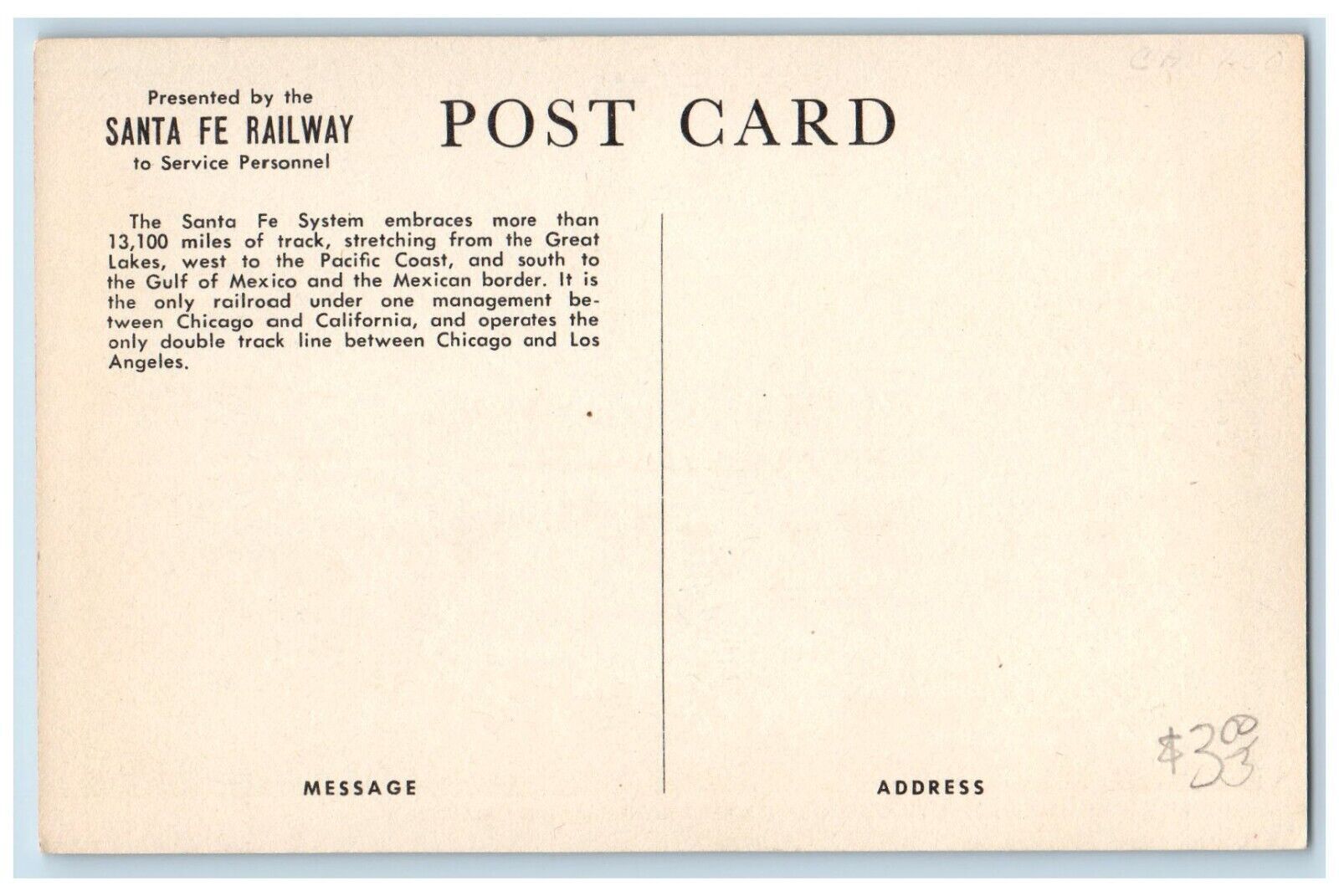 Santa Fe California Postcard Diesel Locomotive Pulling Freight Train Rail c1940