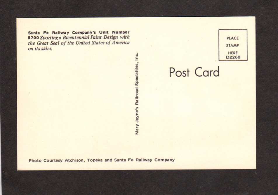 Santa Fe Railroad Train Unit 5700 Bicentennial Paint Design Postcard