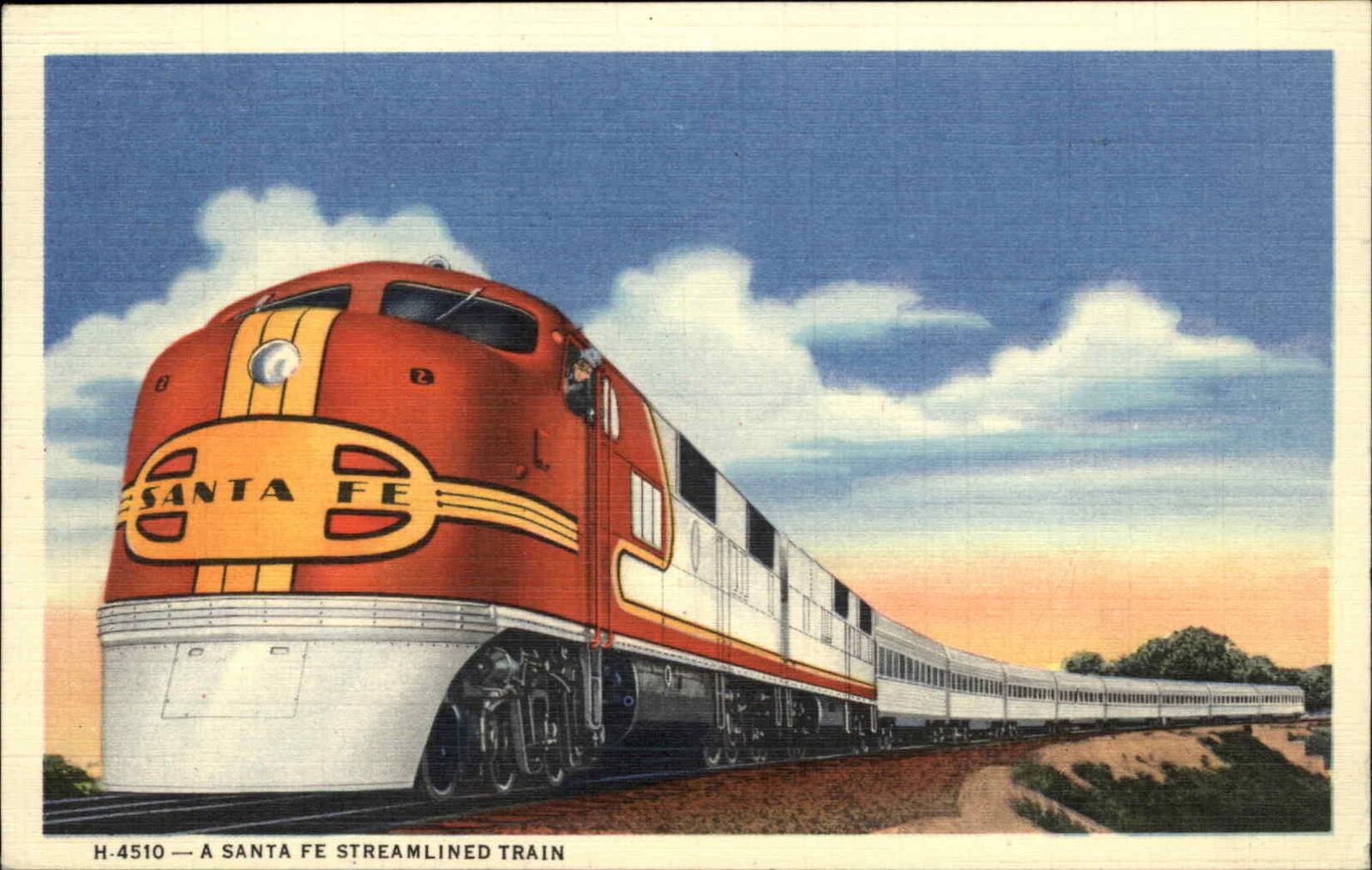 Santa Fe RR Train Fred Harvey H-4510 Nice Linen Postcard
