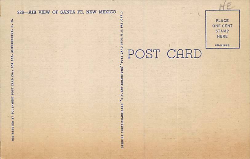 Santa Fe Santa Fe, New Mexico NM Postcards Grade: 2 Size: Regular Size Postcard - approximately 3 1/2 inch x 5 1/2 inch (9 CM x 14 CM) Grading Scale: Grade 1 = Perfect corners Grade 2 = Very Minimal corner wear ... Read More